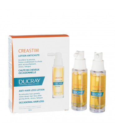 Ducray Creastim Duo é um pack que contém 2 embalagens de loção anti-queda revitalizante, para cabelos com queda ocasional.